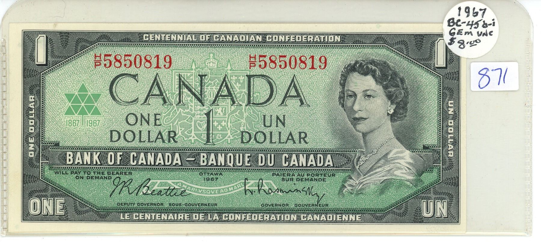 1967 Centennial $1 note. H/P Prefix. BC-45b-i. Gem Uncirculated.