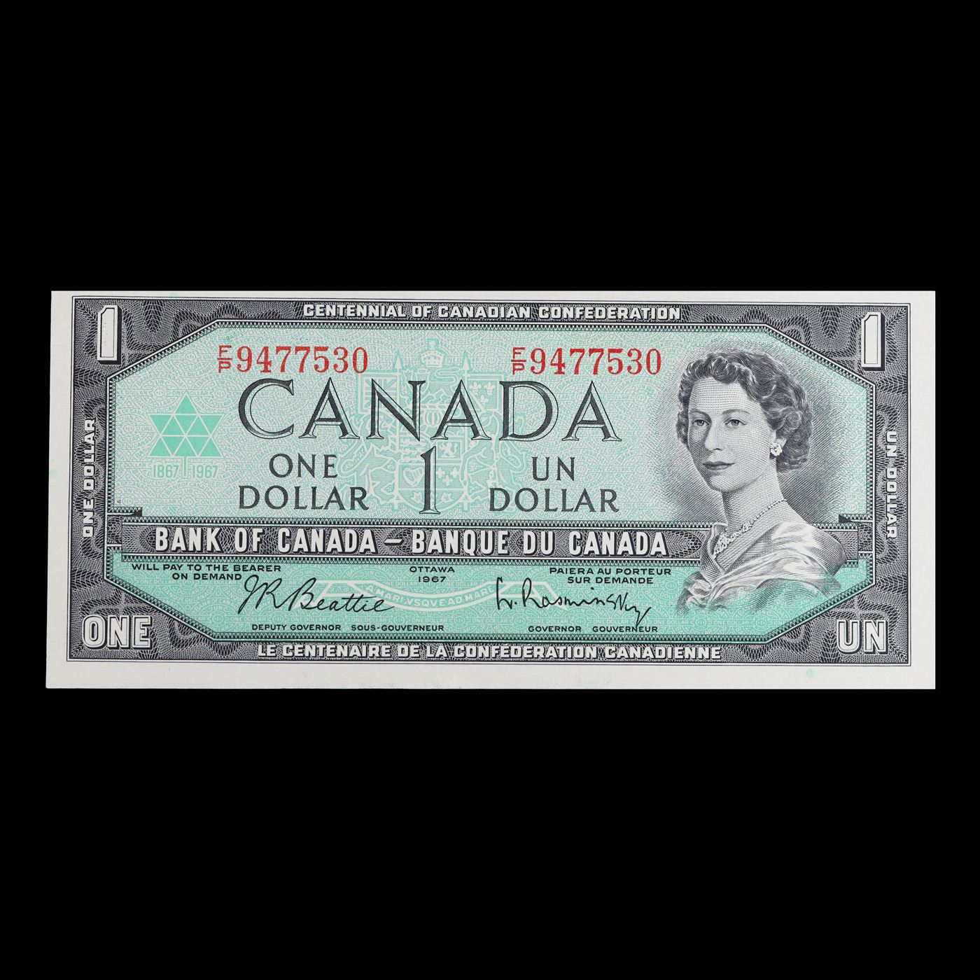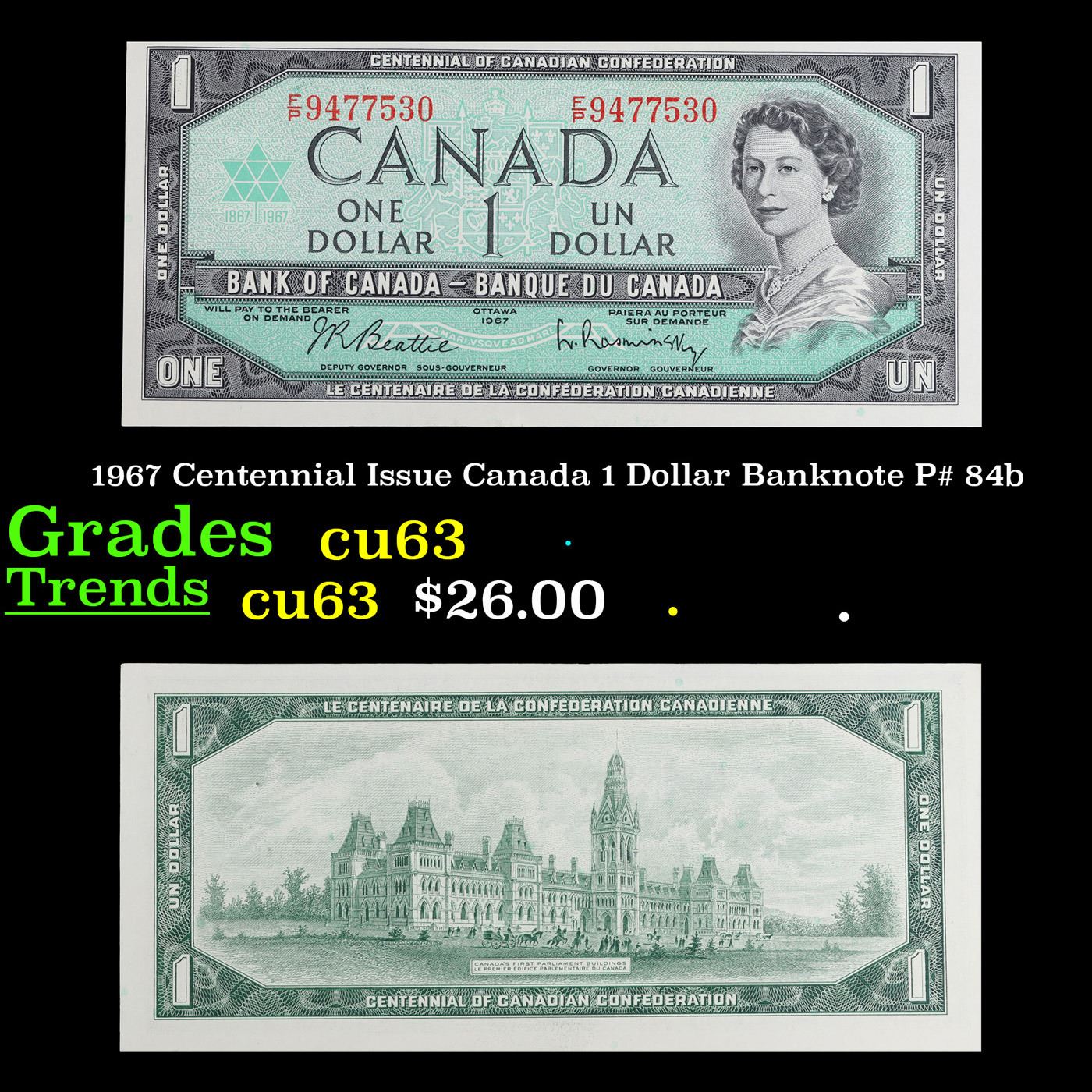 1967 Centennial Issue Canada 1 Dollar Banknote P# 84b Grades Select CU.