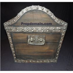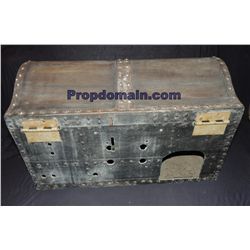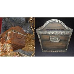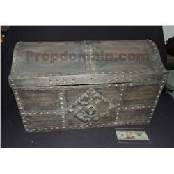 This is a vintage Pirate Treasure Chest from Walt Disney's original Pirates of the Caribbean ride and attraction at Disneyland back in the late 60's and early 70's. Measurements are about 18 inches tall, 28 inches wide, and 14 inches deep. Inside is a tray with gold coins and jewels, and a pair of pneumatic skeleton hands with the mechanical rig still intact that either jiggled or moved up and down. On one side there are holes that once held a hidden speaker. The entire chest is made of fiberglass with steel hinges and reinforcements inside to keep the shape and remain sturdy. There was once a lock latch, but it is unfortunately lost to history.