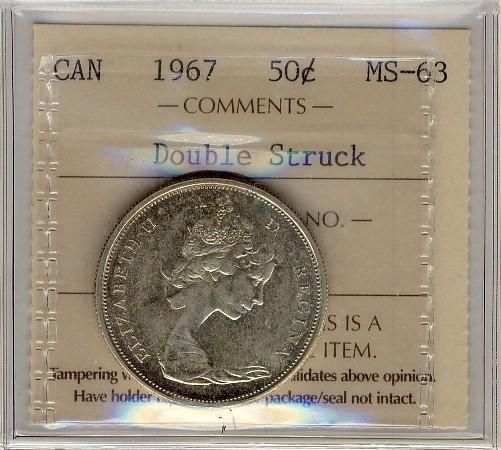 1967 DOUBLE STRUCK 50¢ ICCS MS63