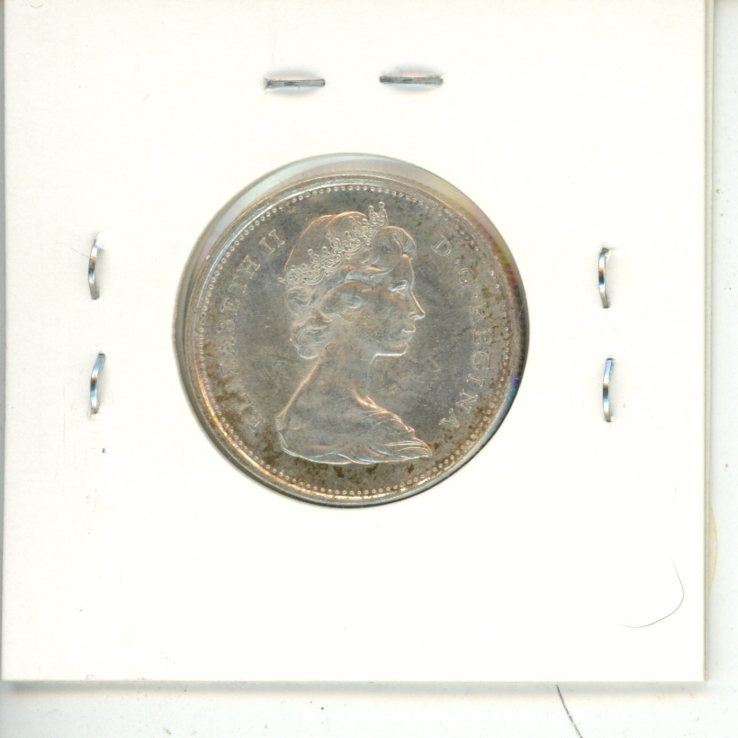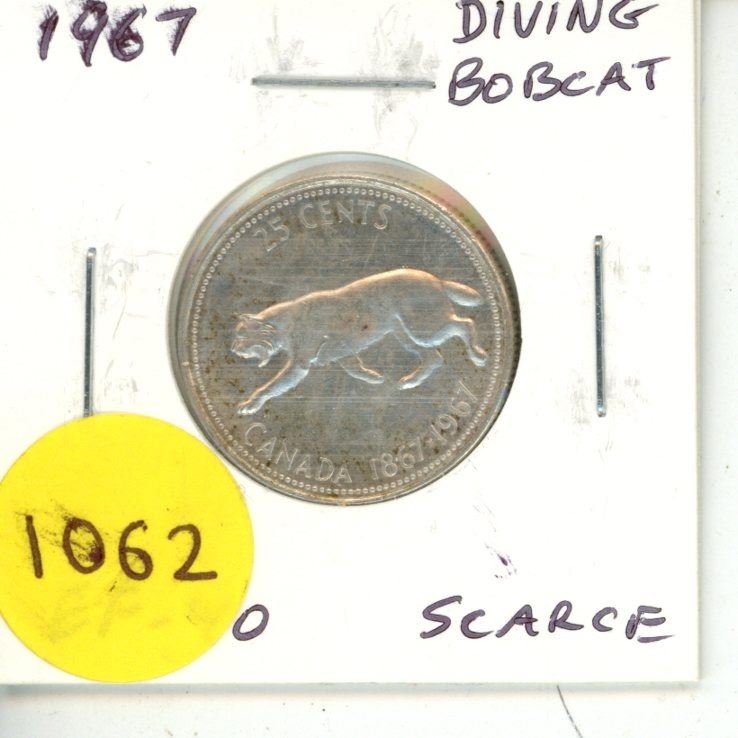 1967 Diving Bobcat Canadian Silver 25 Cents. Rotated Die so it appears the Bobcat is Diving. EF-40. Scarce.