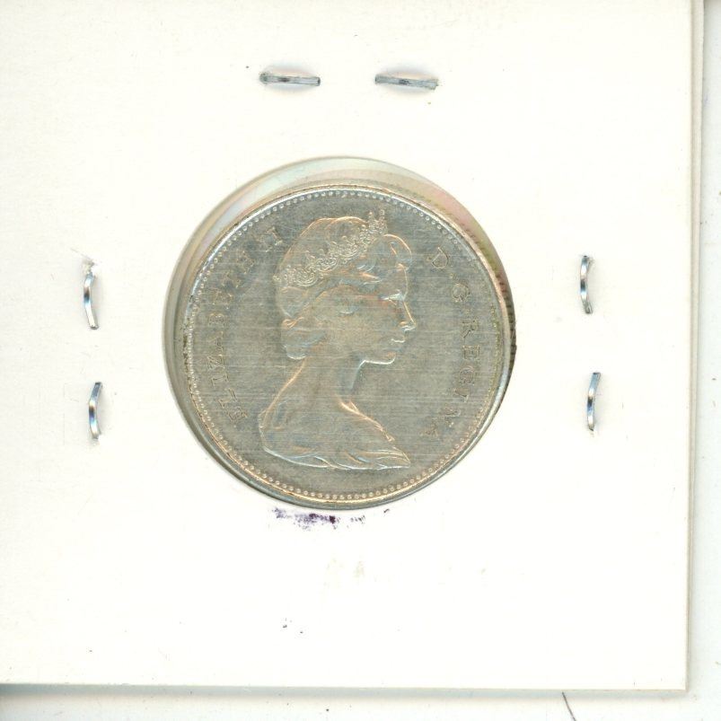 1967 Diving Bobcat Silver 25 Cents. Rotated Die so it appears the Bobcat is Diving. EF-40. Scarce.