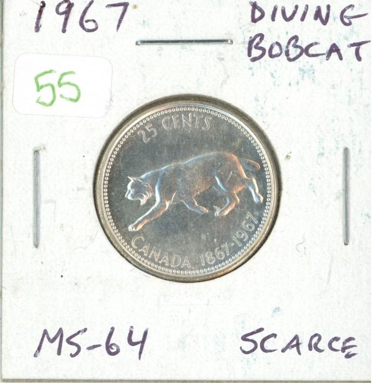 1967 Diving Bobcat. This coin is the result of Rotated Dies. MS-64. Scarce.
