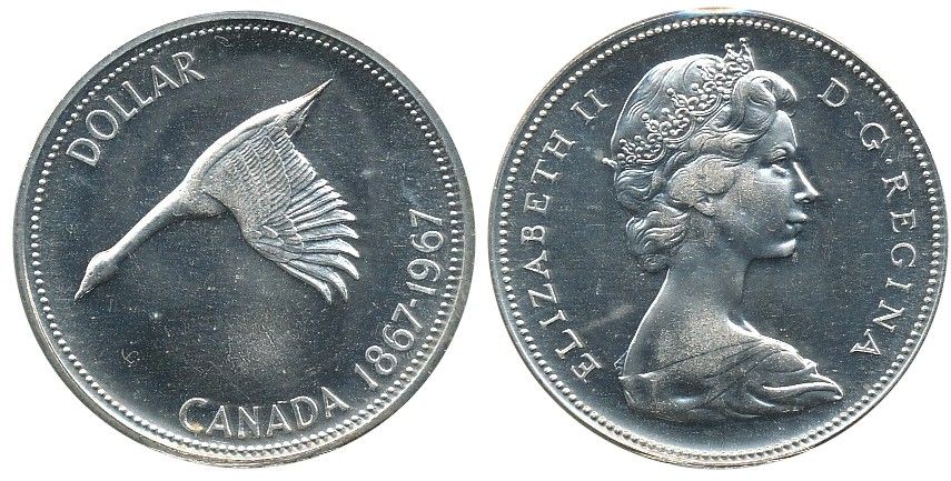 1967 Diving Goose $1 ICCS MS65. Fully brilliant.