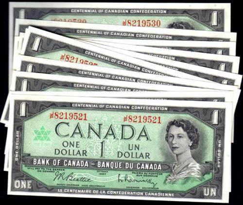1967 One Dollar BC-45b, ten consecutive serial numbers J/P8219521-530, all Uncirculated