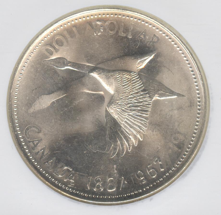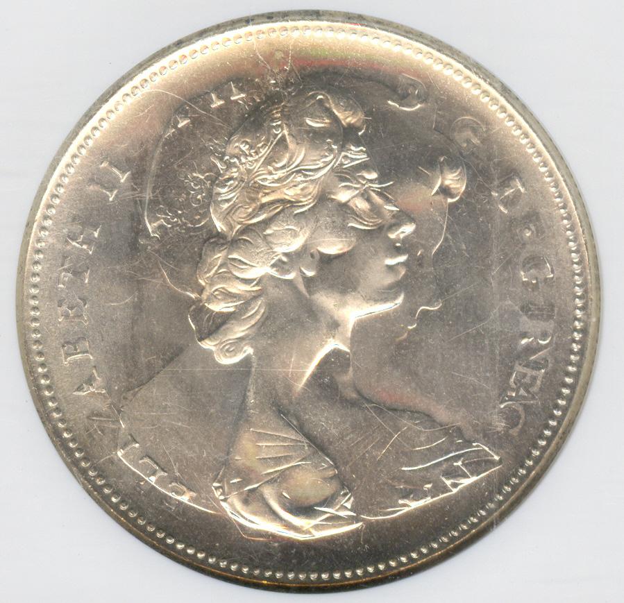 1967 Dollar, graded NGC MS-64; Double Struck, Rotated in Collar, Mint Error.
