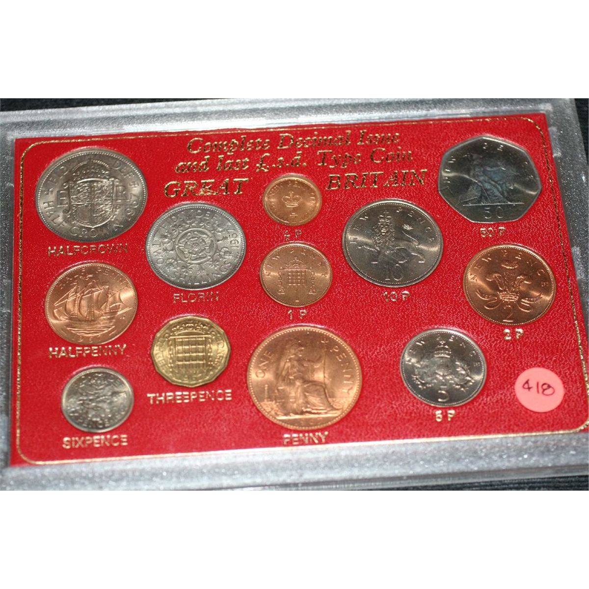 1967 Great Britain Coin Set, Complete Decimal Issue and the Last Pound.S.D. Issue