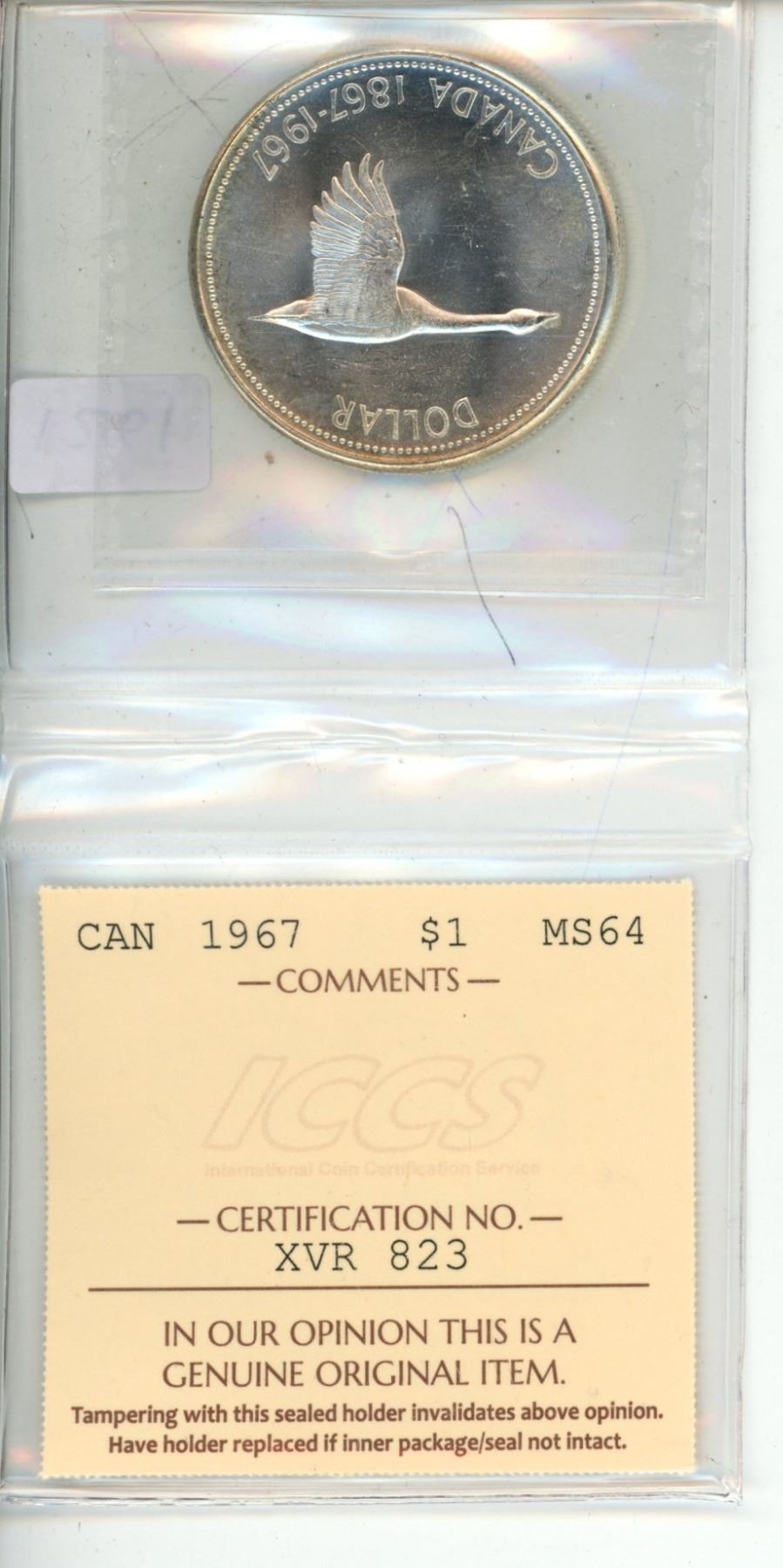 1967 ICCS Graded - Canadian Silver Dollar - MS64