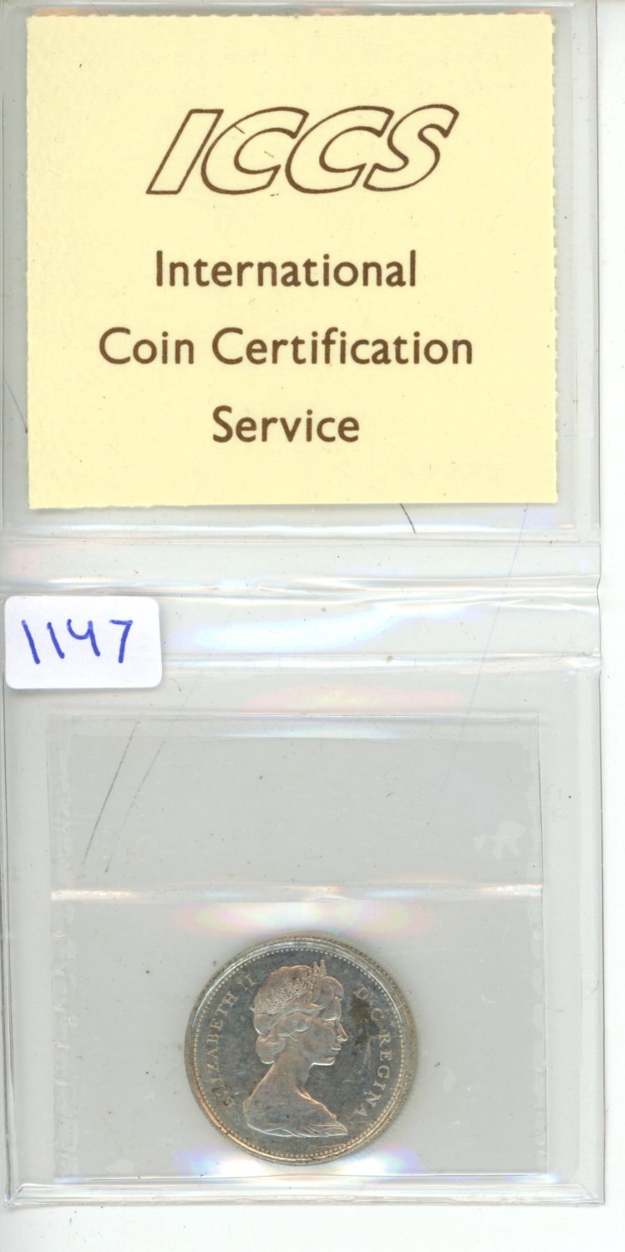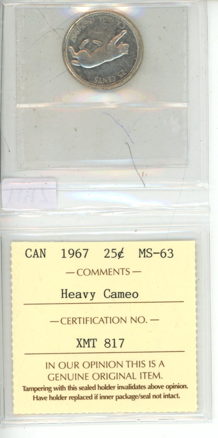 1967 ICCS Graded - Canadian Twenty-Five Cent Coin - MS 63 - Heavy Cameo