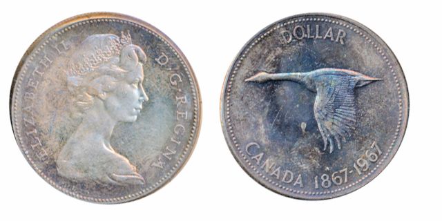 1967. ICCS Mint State-65. Medium to heavy gorgeous toning in rainbow hues.
