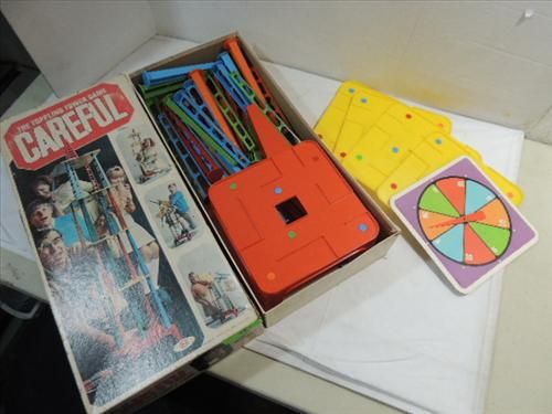 1967 IDEAL FAMILY GAME CAREFUL - TOPPLING TOWER. INORIGINAL BOX. LOOKS COMPLETE. AS SHOWN. VIEW PICTURE FOR DETAIL.