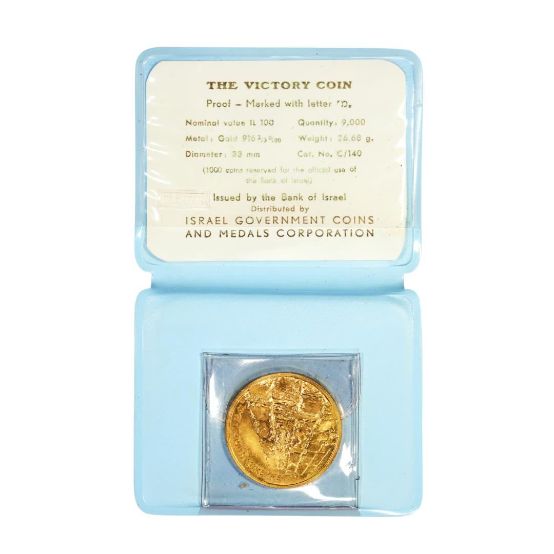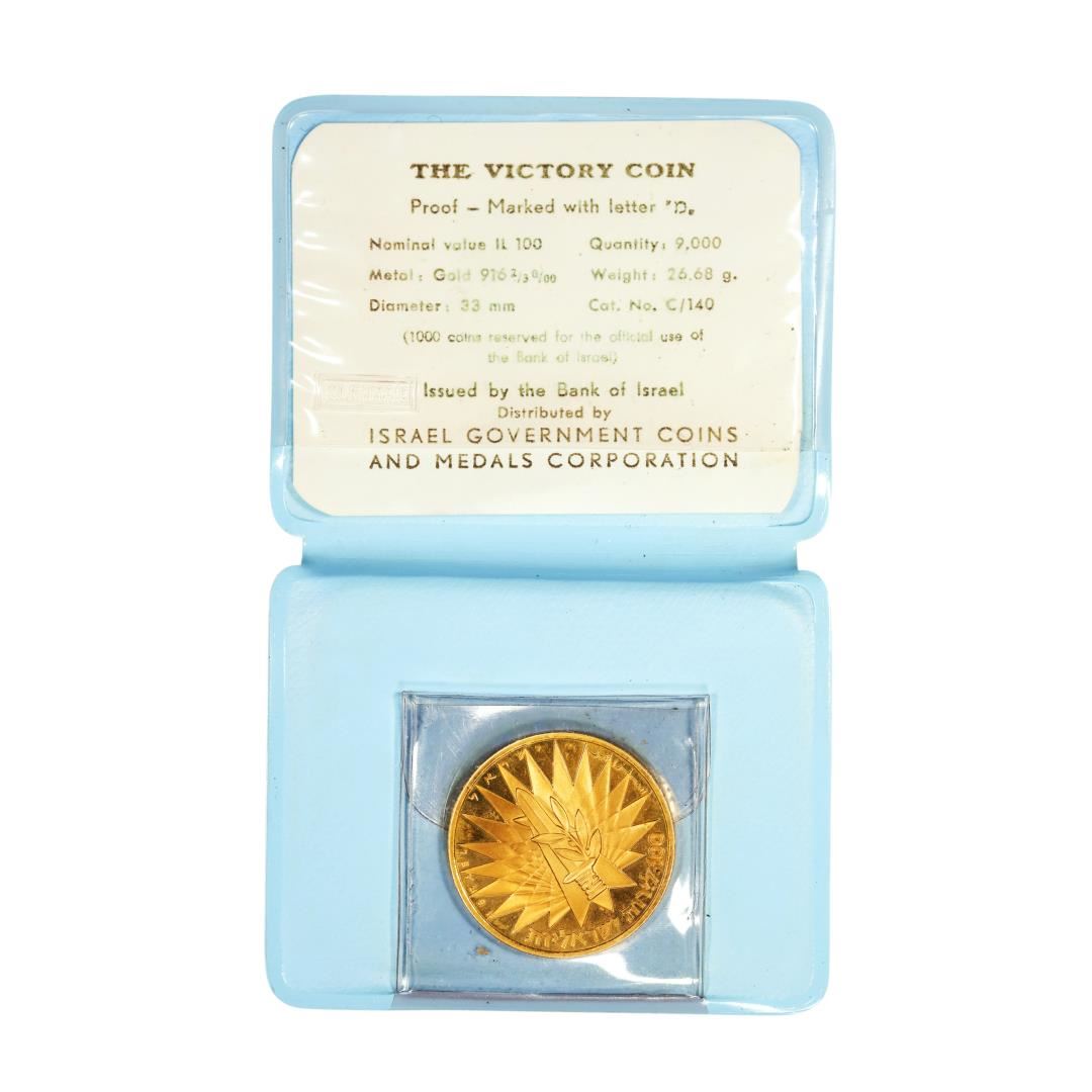 One 1967 Israel Proof 100 Lirot Victory Gold Coin.