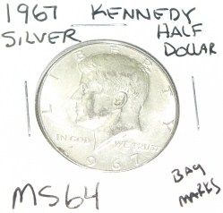 1967 KENNEDY SILVER HALF DOLLAR *EXTREMELY RARE MS-64 HIGH GRADE Bag Marks - NICE COIN*!! ***Coin, Currency & All Items Listed in this auction - Grades, Conditions and Values are not Safe Deposit Coins LLC Responsibilty. Grades, Condition and Values are determined by Consigner(s) & Buyers ONLY***