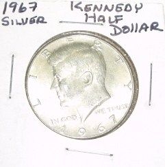 1967 KENNEDY SILVER HALF DOLLAR *NICE COIN - PLEASE LOOK AT PIC. TO DETERMINE GRADE*!! ***Coin, Currency & All Items Listed in this auction - Grades, Conditions and Values are not Safe Deposit Coins LLC Responsibilty. Grades, Condition and Values are determined by Consigner(s) & Buyers ONLY
