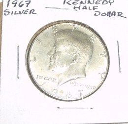 1967 KENNEDY SILVER HALF DOLLAR *NICE SILVER COIN - PLEASE LOOK AT PIC. TO DETERMINE GRADE*!! ***Coin, Currency & All Items Listed in this auction - Grades, Conditions and Values are not Safe Deposit Coins LLC Responsibilty. Grades, Condition and Values are determined by Consigner(s) & Buyers ONLY