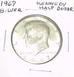 1967 KENNEDY SILVER HALF DOLLAR *NICE SILVER COIN - PLEASE LOOK AT PIC. TO DETERMINE GRADE*!! ***Coin, Currency & All Items Listed in this auction - Grades, Conditions and Values are not Safe Deposit Coins LLC Responsibilty. Grades, Condition and Values are determined by Consigner(s) & Buyers ONLY