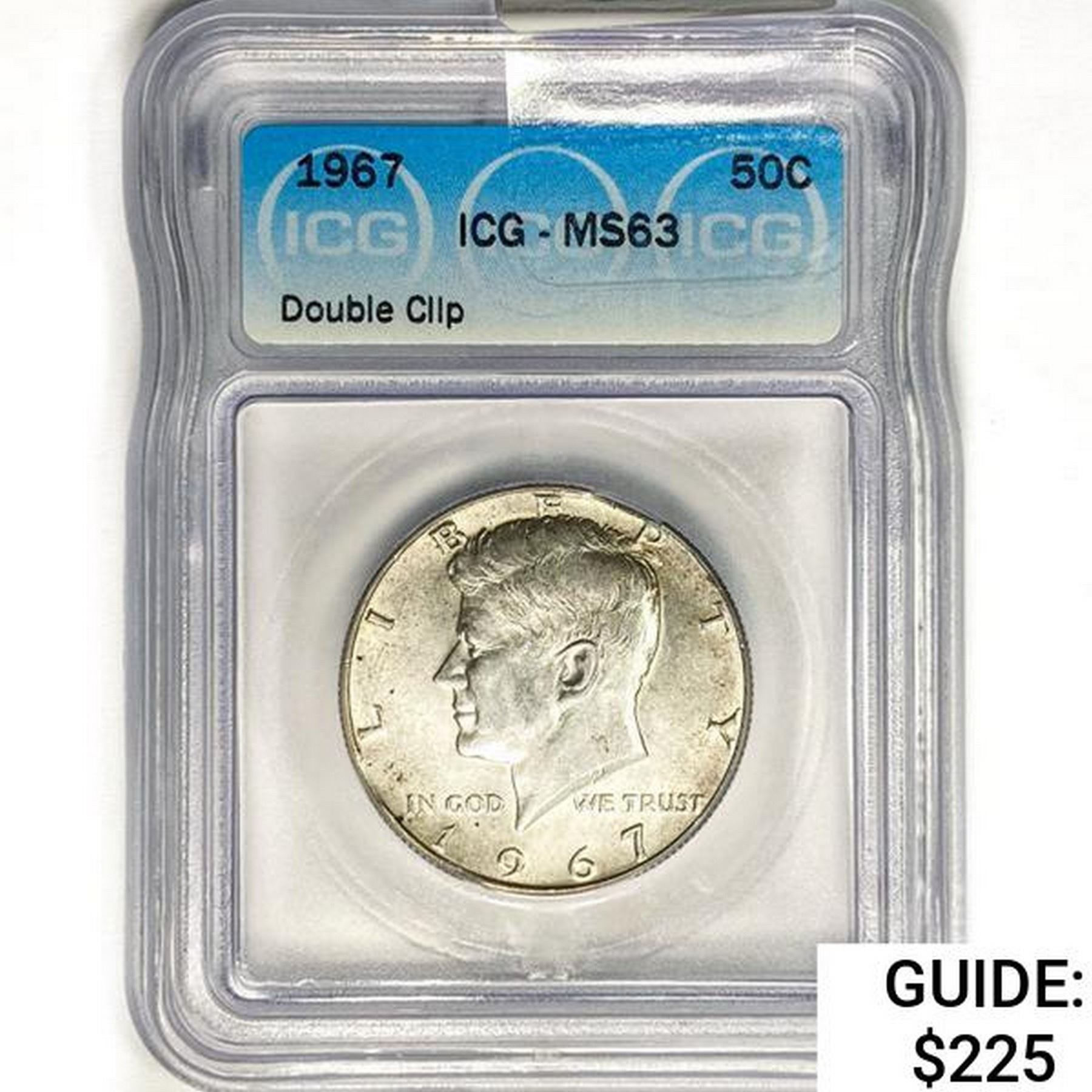 1967 Kennedy Half Dollar ICG MS63 Double Clip