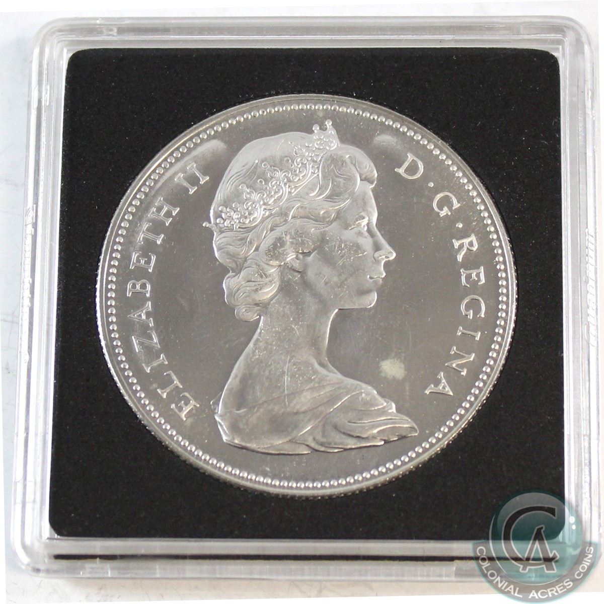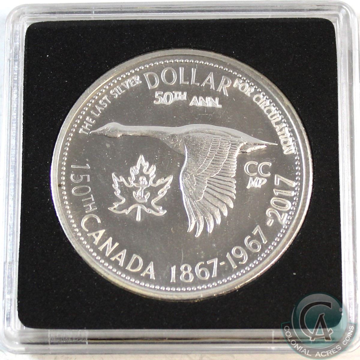 1967 Leaf & Anchor Counter-Stamped Silver Dollar Commemorating the 150th Anniversary of Canada in Proof-Like Condition. The 1967 Silver Dollar was the last Silver Coin issued for circulation and Commemorates the 100th Anniversary of the Confederation as well as the first year the Mint has ever changed the design on all the circulating coins. This Limited Edition counter-Stamped dollar was issued by Citadel Coins with a mintage 200.