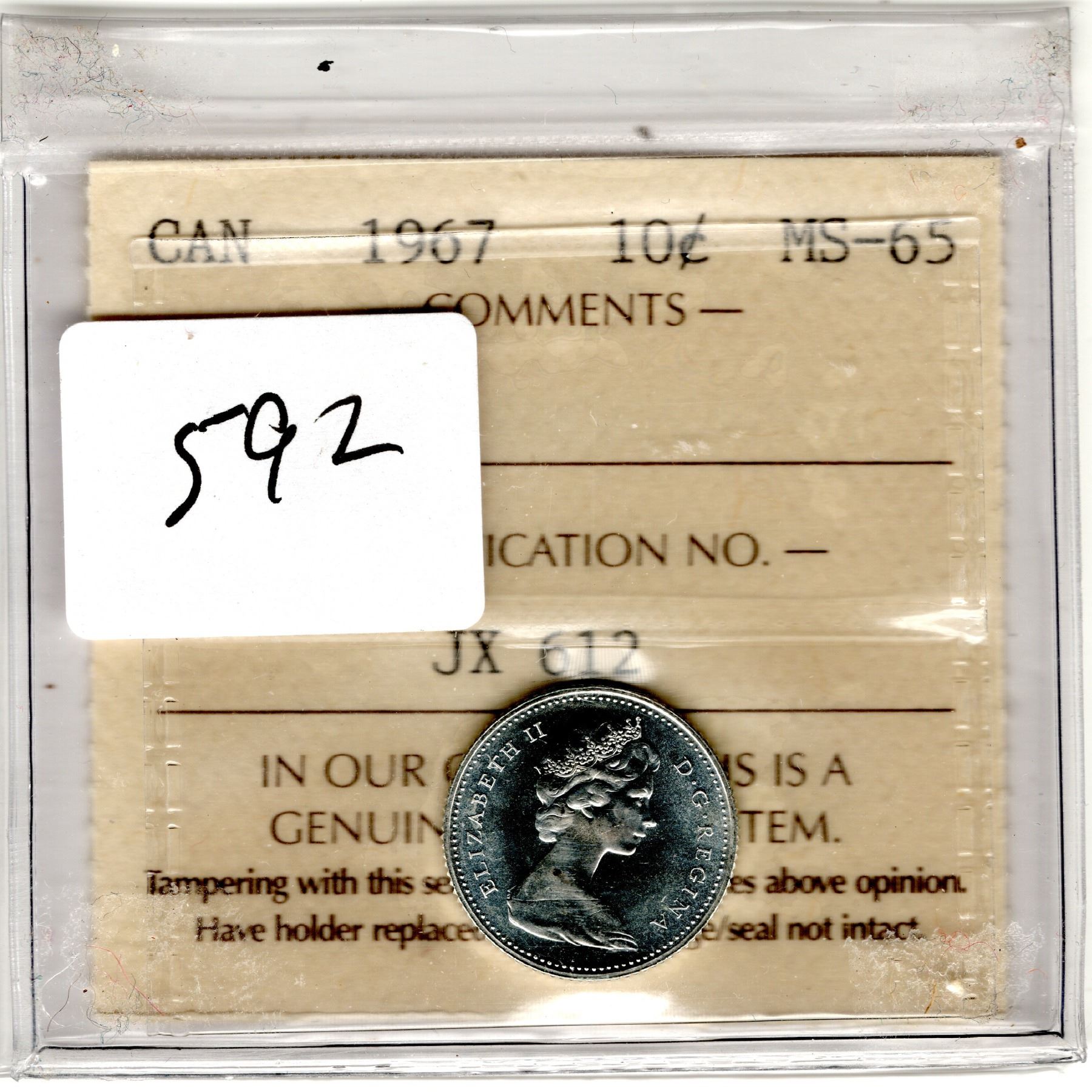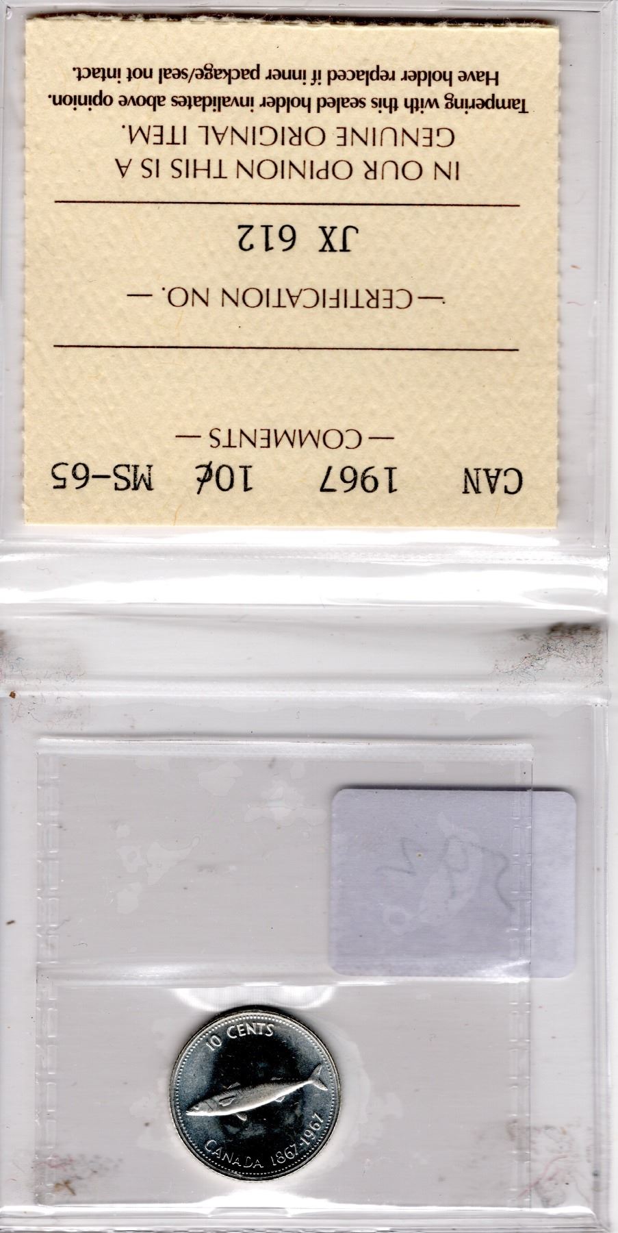 1967 MACKERAL 10 CENT, MS65, ICCS