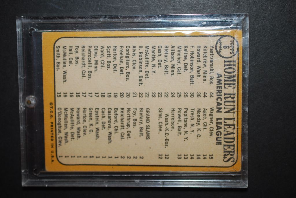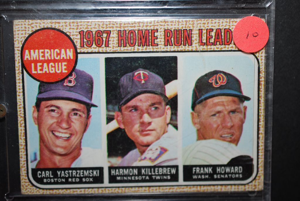 1967 MLB Home Run Leaders American League Baseball Trading Card In Display Case; Carl Yastrzemski Boston Red Sox, Harmon Killebrew Minnesota Twins & Frank Howard Washington Senators; EST. $5-10