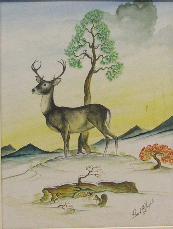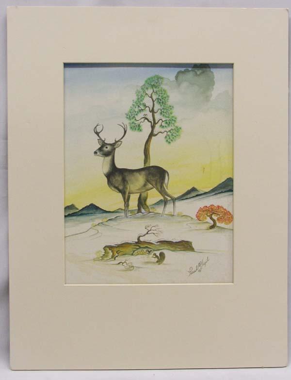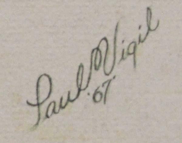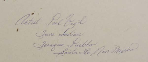 1967 Tesuque Matted Painting by Paul Vigil, minor soiled spot on one side, visual measures 11 x 8.5''. Buyers Pay Actual Shipping and Handling Charges(see terms and conditions for more information)