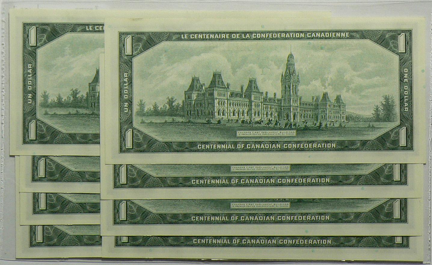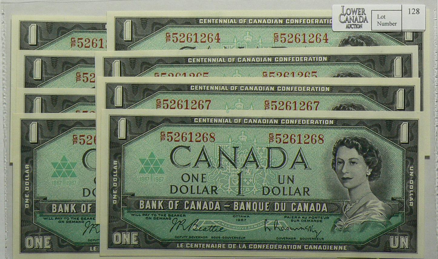 1967 One Dollars 9 Consecutive notes, BC-45b-i, Gem UNC, Beattie Rasminsky, serial G/P5261260-61-62-63-64-65-66-67-68.