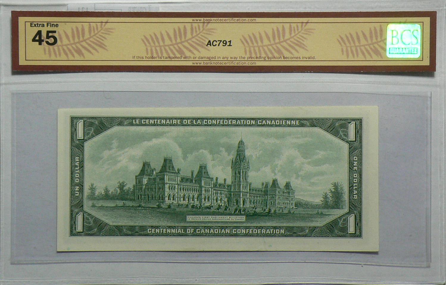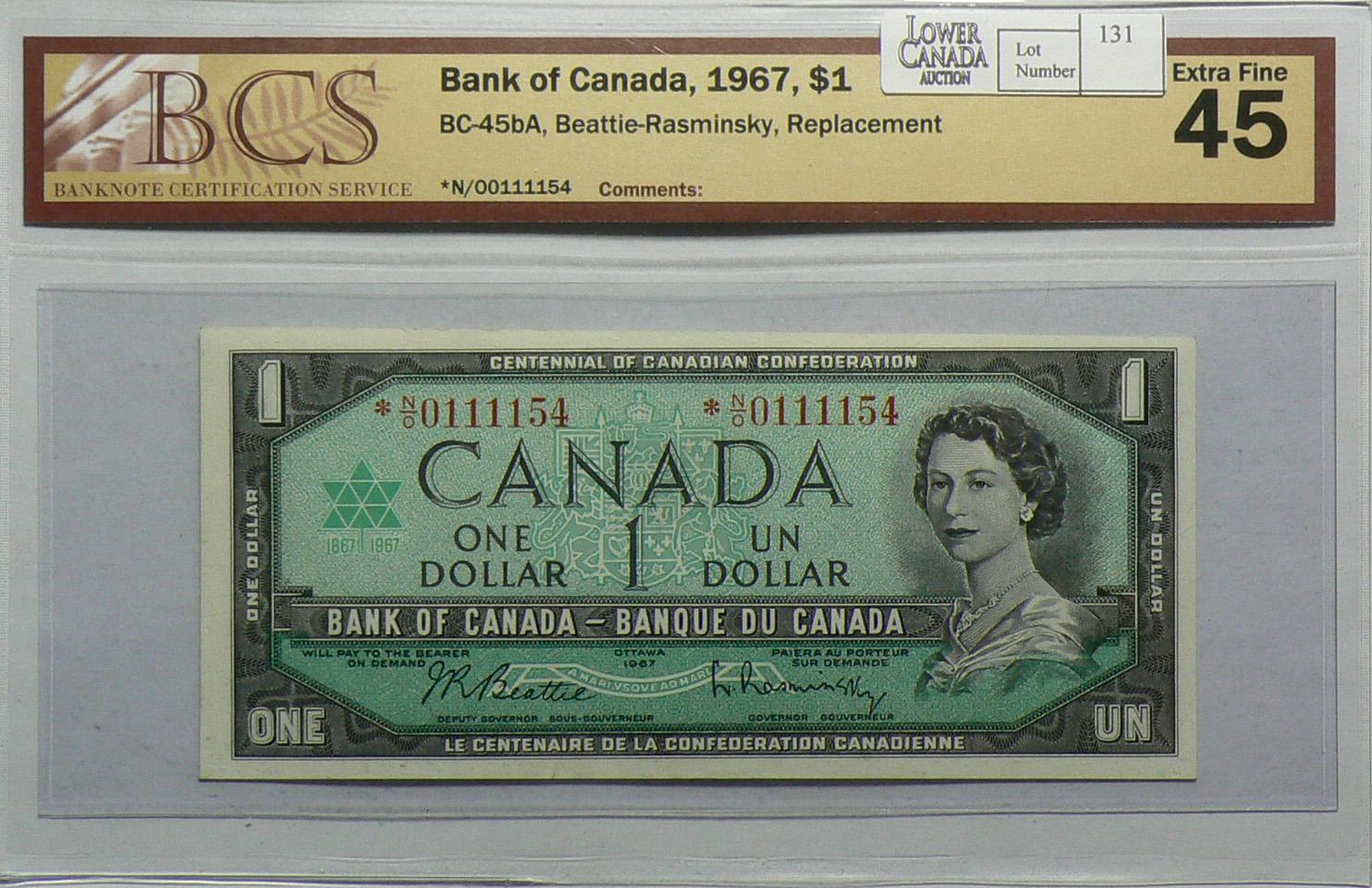 1967 One Dollars Replacement, BC-45bA, BCS EF-45, Beattie Rasminsky, serial *N/O0111154.