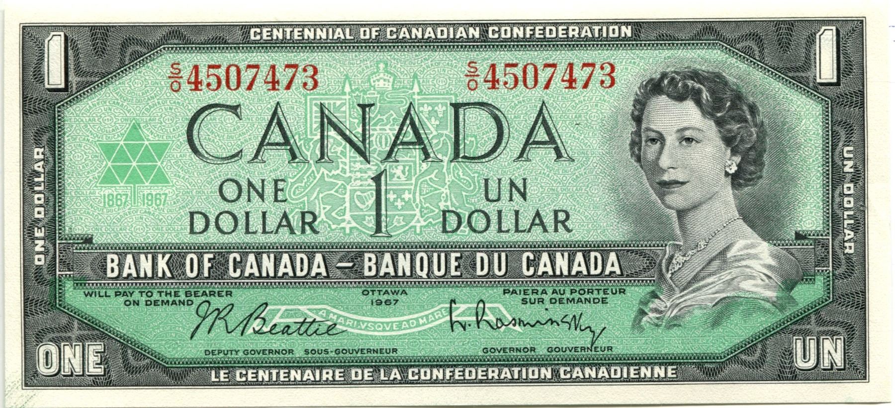 1967 Pair of UNC Consecutive $1 bills, Beattie/Rasminsky, S/O 4507473-474