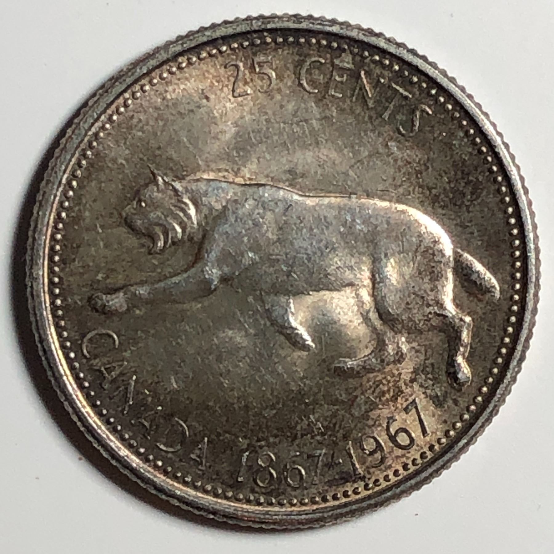 1967 Queen Elizabeth 25 Cents UNC Nice Tonning
