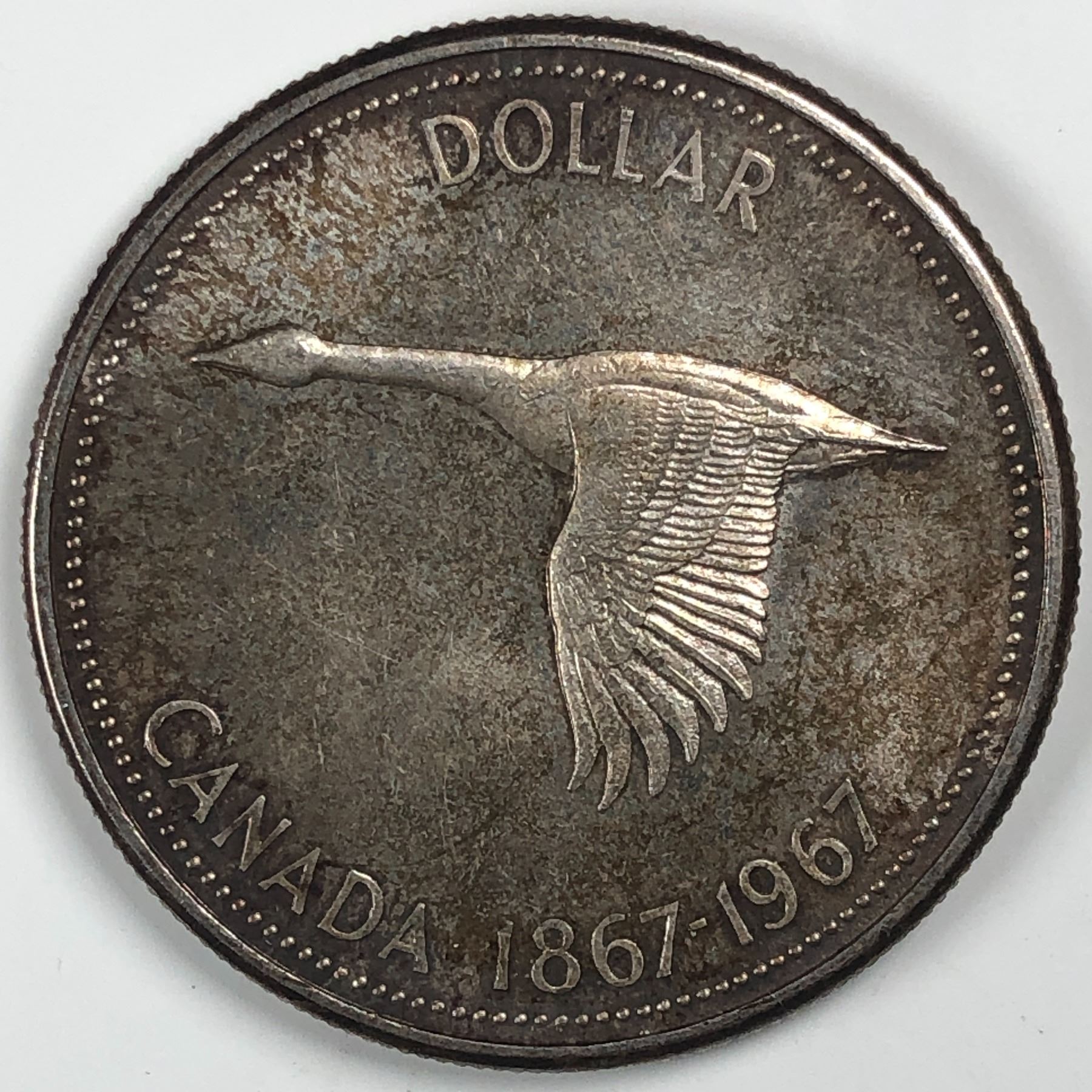 1967 Queen Elizabeth II Canadian Silver Dollar UNC Golden Tones