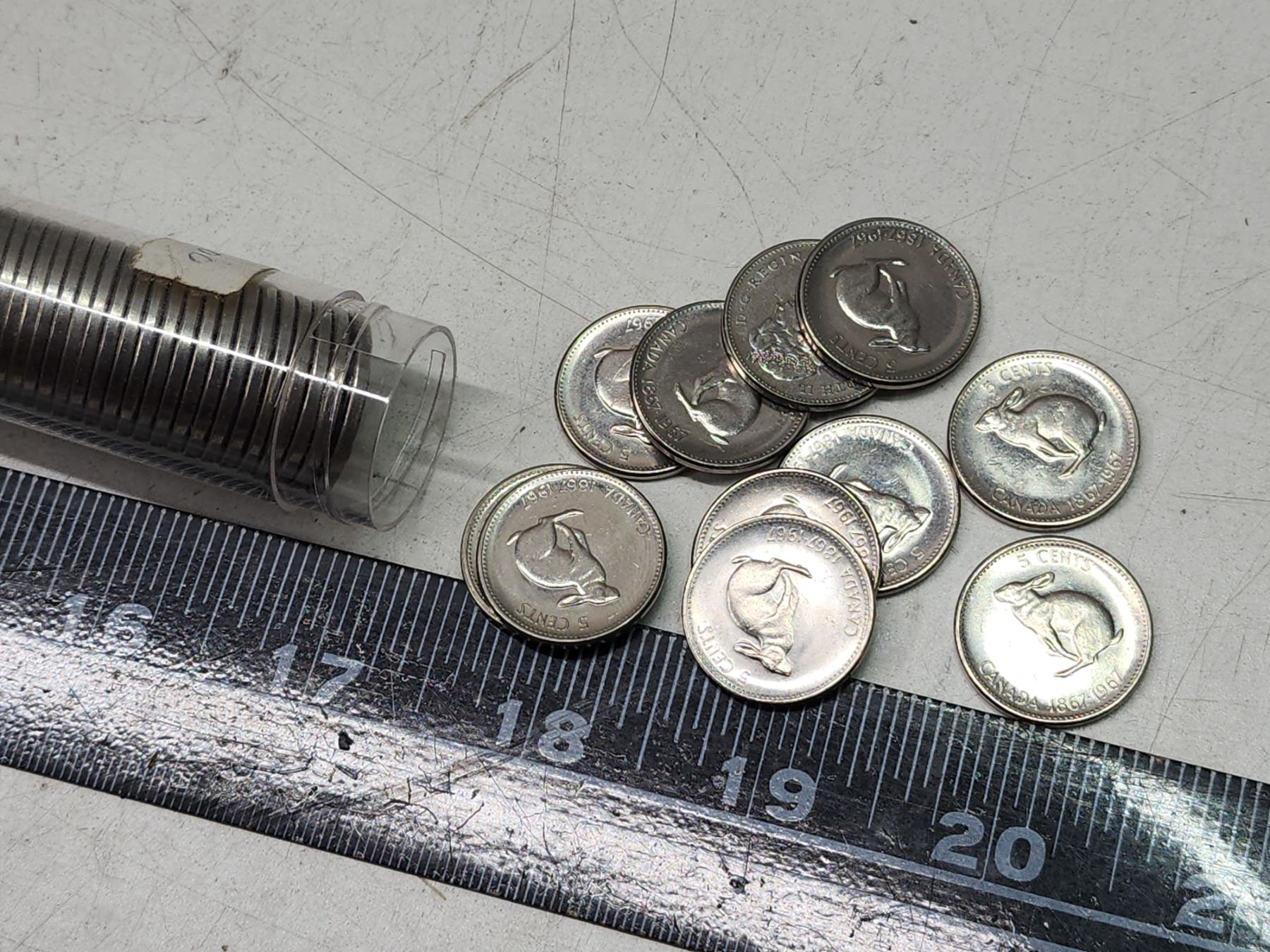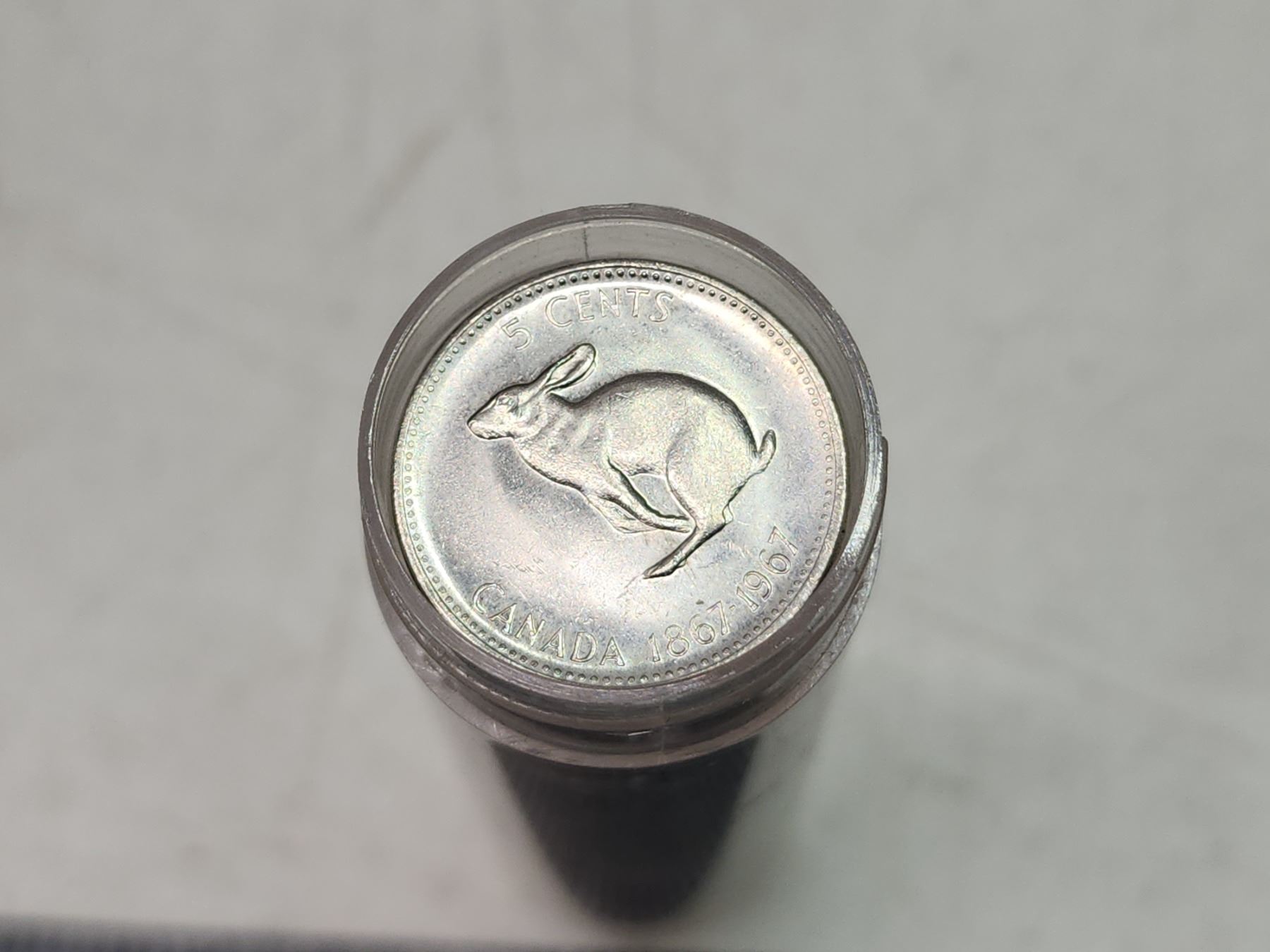 1967 Roll of Canadian centiennial 5 cent coins - BU
