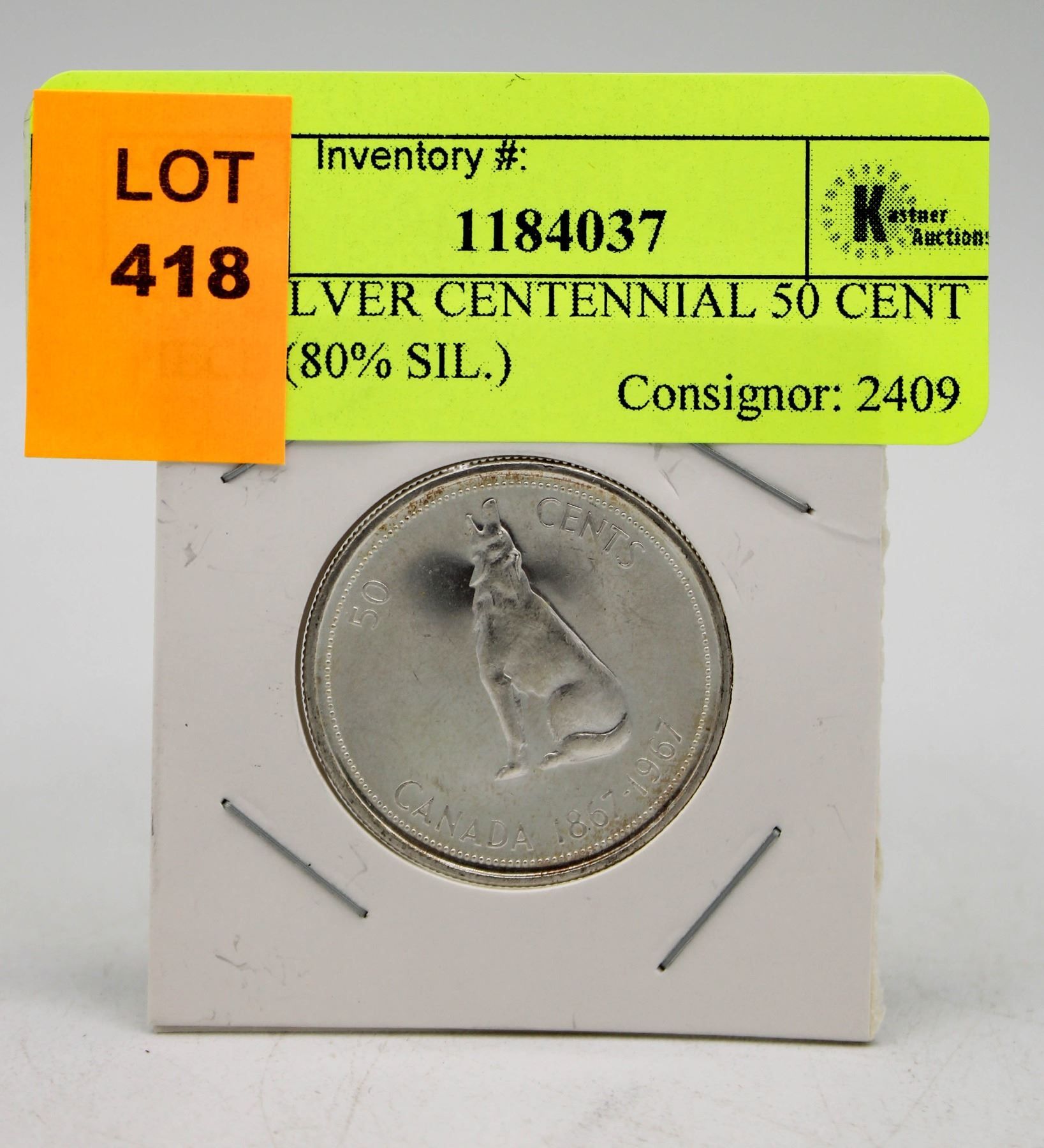 1967 SILVER CENTENNIAL 50 CENT PIECE (80% SIL.)