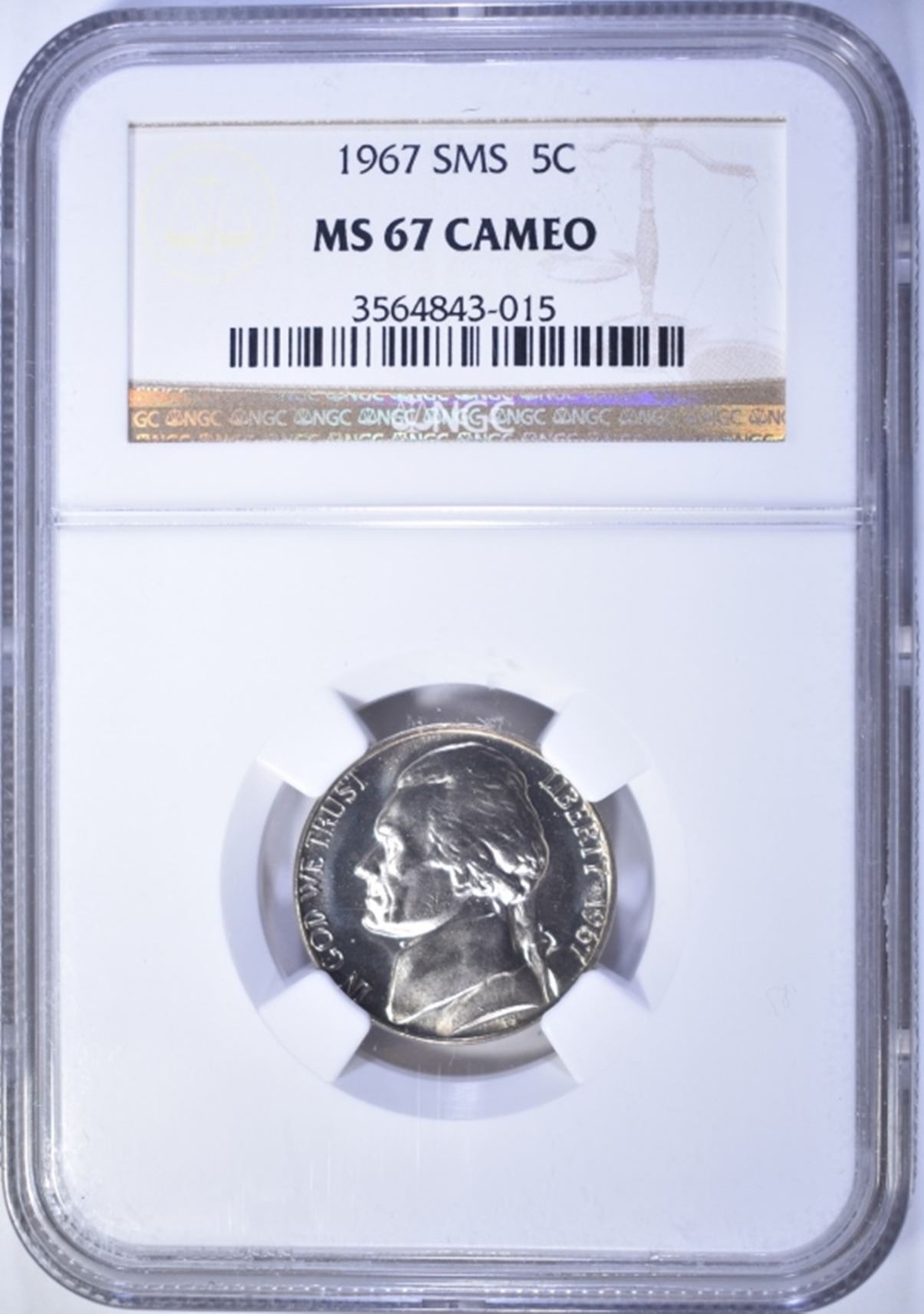 1967 SMS JEFFERSON NICKEL, NGC MS-67 CAMEO