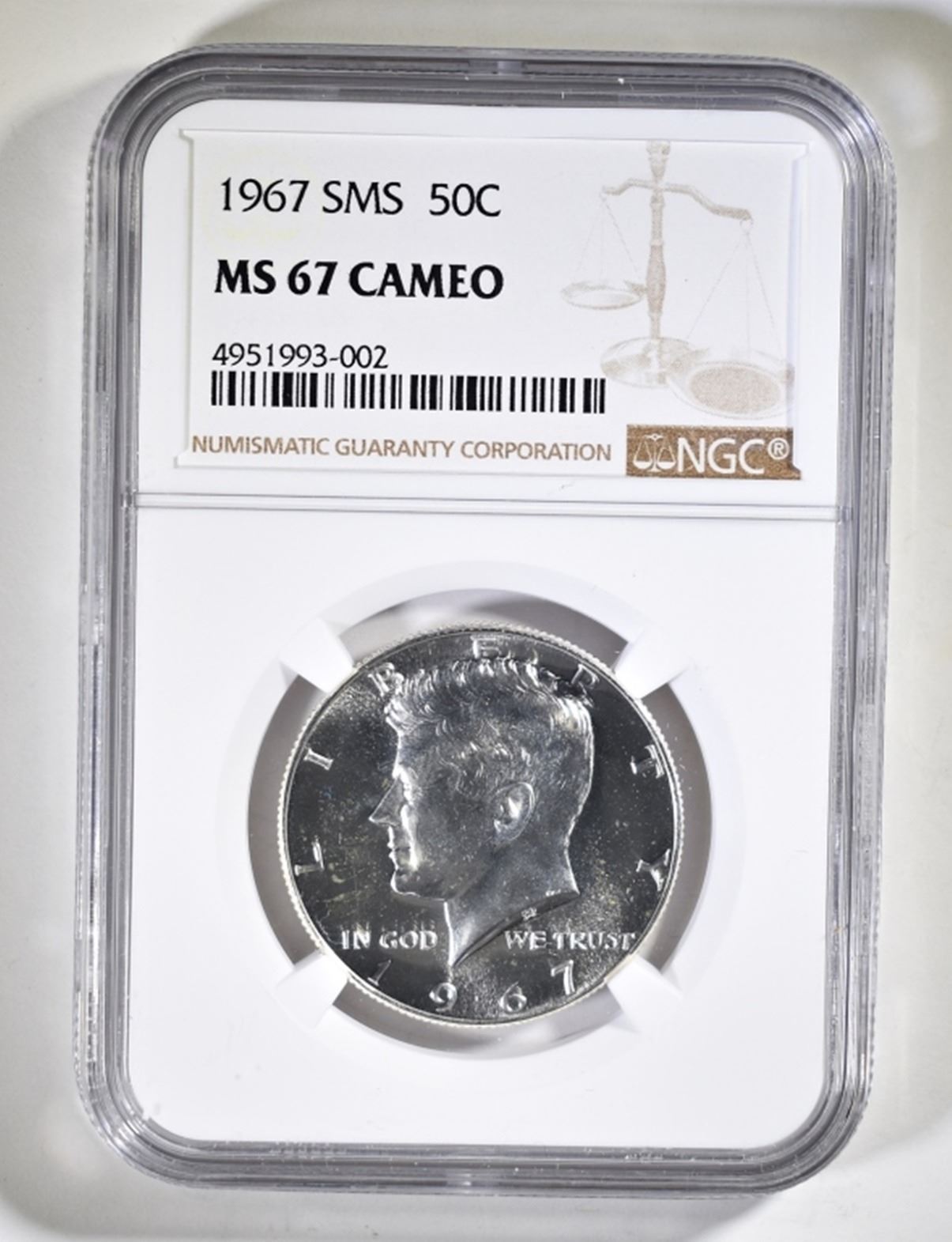 1967 SMS KENNEDY HALF DOLLAR, NGC MS-67 CAMEO