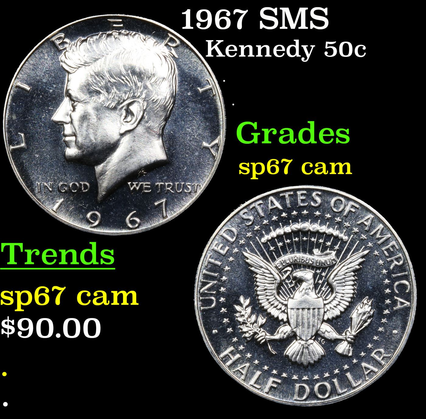 1967 SMS Kennedy Half Dollar 50c Grades sp67 cam.