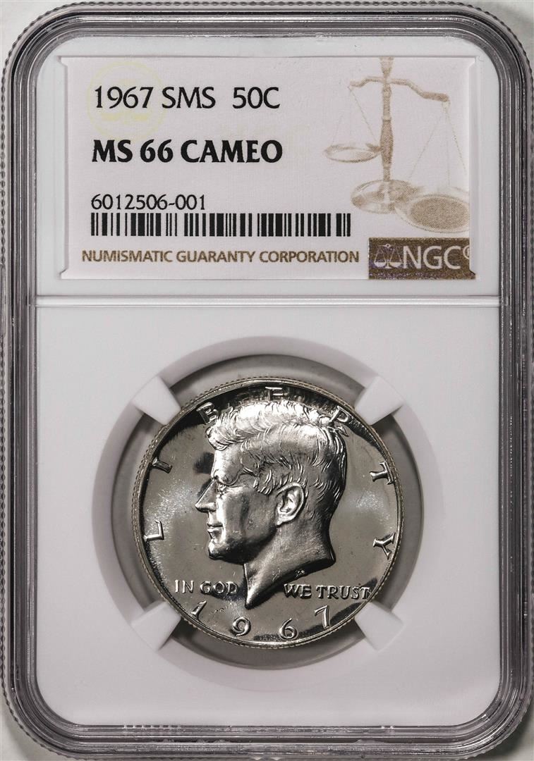 One 1967 SMS Kennedy Half Dollar Coin NGC MS66 Cameo. NGC Certified.