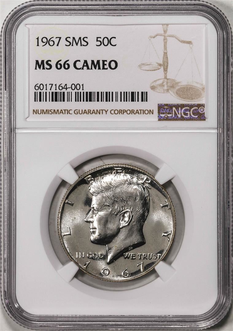 One 1967 SMS Kennedy Half Dollar Coin NGC MS66 Cameo. NGC Certified.