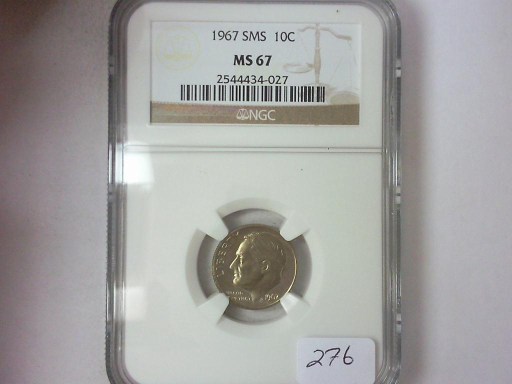 1967 SMS ROOSEVELT DIME NGC MS67