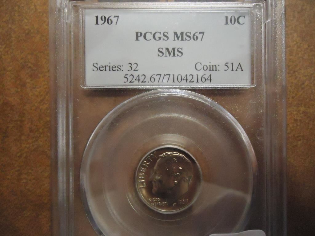 1967 SMS ROOSEVELT DIME PCGS MS67