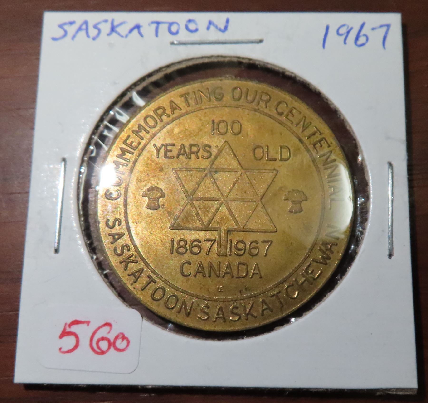 1967 Saskatoon Trade Dollar. Commemorates Canadian Centennial. Unc.