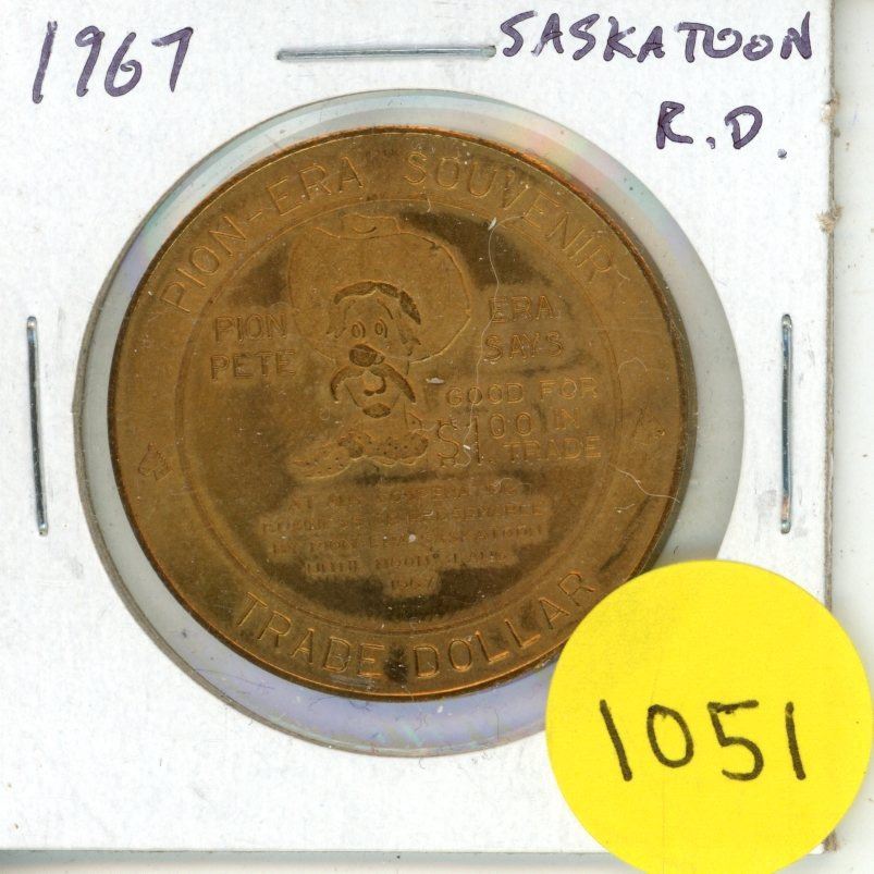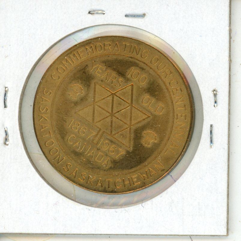 1967 Saskatoon Trade Dollar. Commemorates the Canada’s 100th birthday. BU. Rotated Die.