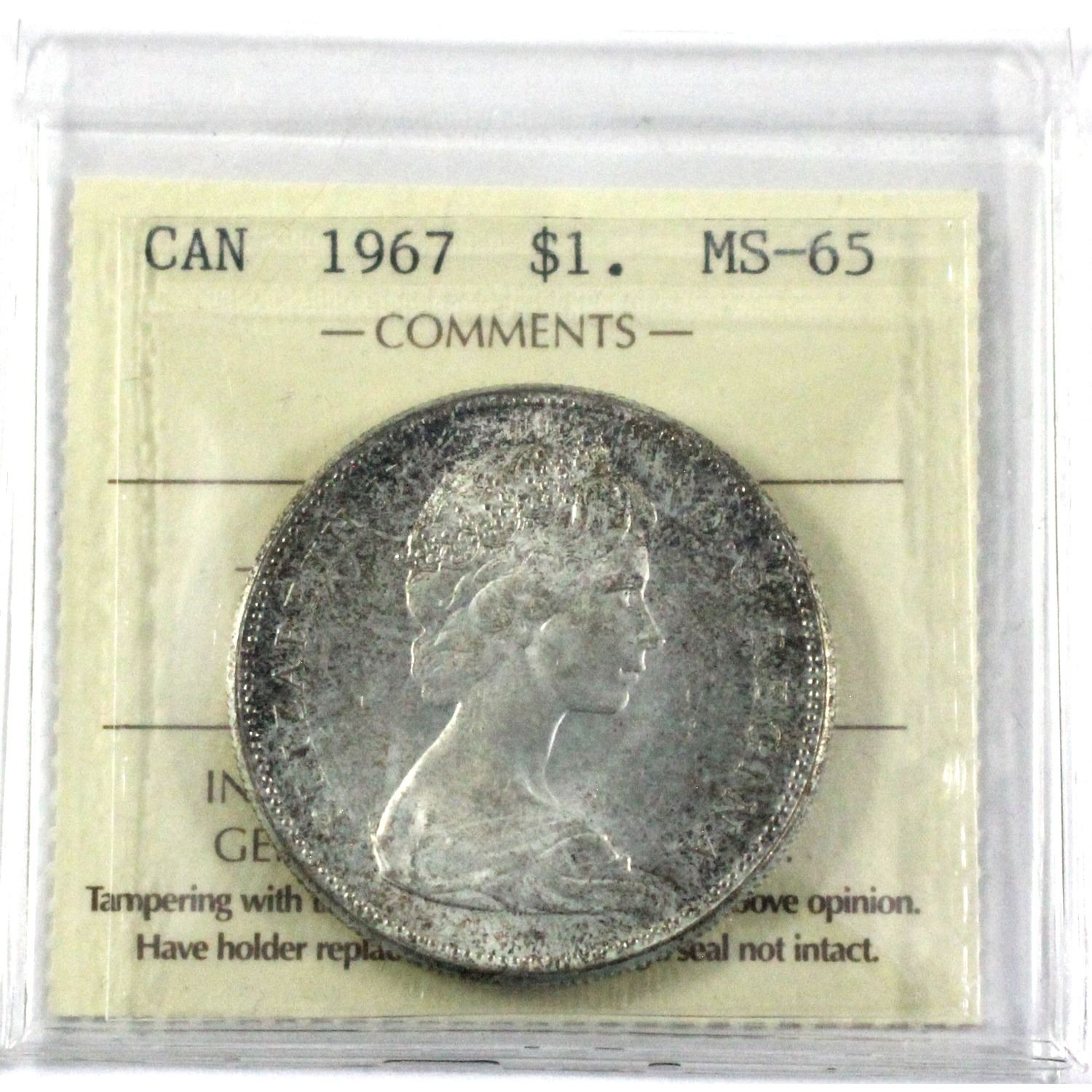 1967 Silver $1.00 ICCS Certified MS-65. Light toning over frosted fields.