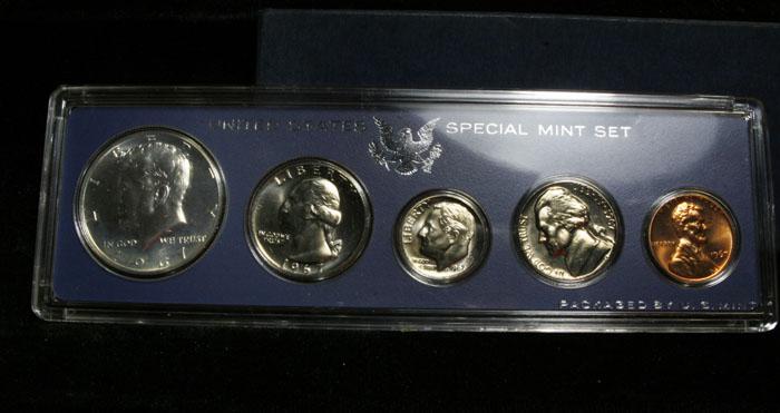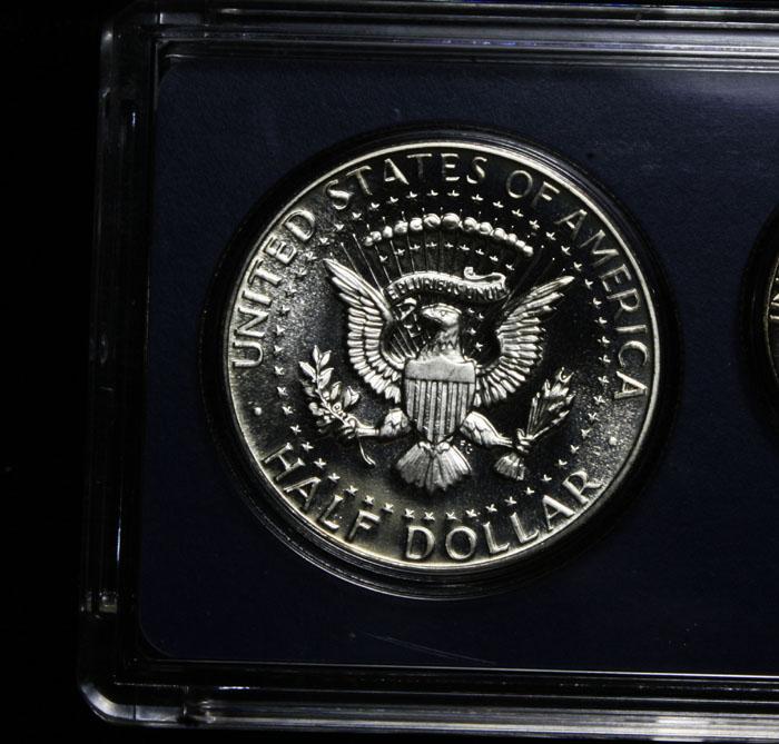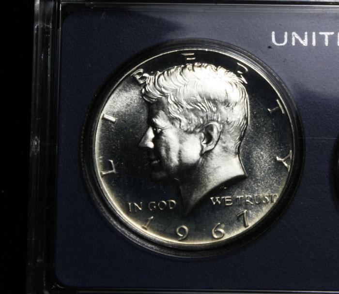 I believe the Half is cameo, look at the pics. PCGS shows the Cameo is worth 2-3 times as a plain Half. In 1964, just when the mint was removing 90% silver coins from circulation, and the us was having a coin shortage, the Mint announced that beginning in 1965, no Proof Sets, or Mint Sets would be produced, Instead they would be making a Special Mint Set. Special Mint Set coins were not proofs, and were not uncirculated, Mint State pieces. Dies for the coins were over polished, while the planchet themselves were not polished. The resulting SMS coins have a brilliant, proof like appearance, much nicer than the run-of-the-mill circulation coins. In 1965 these sets were released in the Traditional Mint Cellophane and White Envelope and in 1966 and 1967 they were packaged in hard, pale blue plastic holders. Note, the set contains a 40% Half Dollar. Estimated Value $35