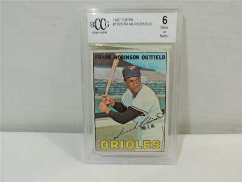 1967 TOPPS #100 GRADED BASEBALL CARD FRANK ROBINSON. GRADED BY BCCG GOOD OR BETTER 6. AS SHOWN. VIEW PICTURE FOR DETAIL.
