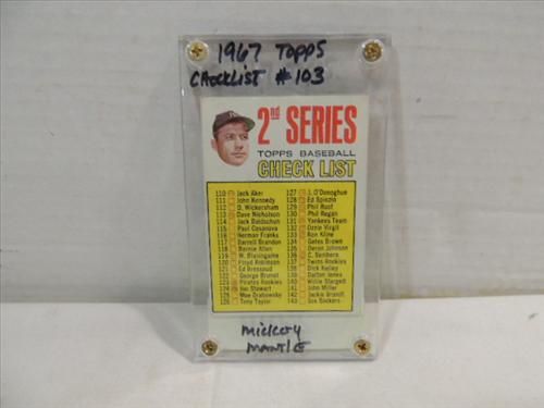 1967 TOPPS #103 BASEBALL CHECK LIST #2 CARD MICKEY MANTLE. AS SHOWN. VIEW PICTURE FOR DETAIL.