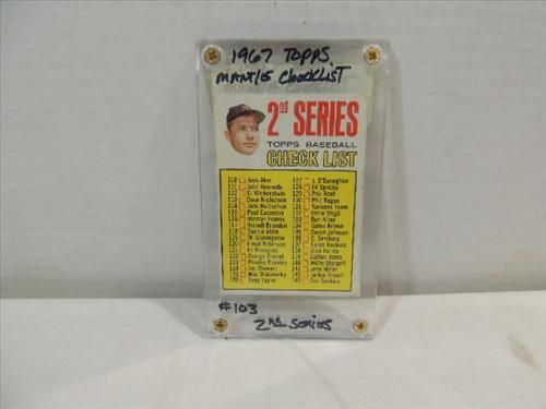 1967 TOPPS #103 BASEBALL CHECK LIST CARD MANTLE. AS SHOWN. VIEW PICTURE FOR DETAIL.