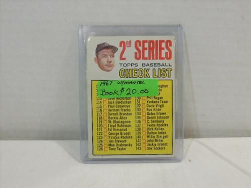 1967 TOPPS #103 BASEBALL CHECK LIST CARD WITH MICKEY MANTLE. AS SHOWN. VIEW PICTURE FOR DETAIL.