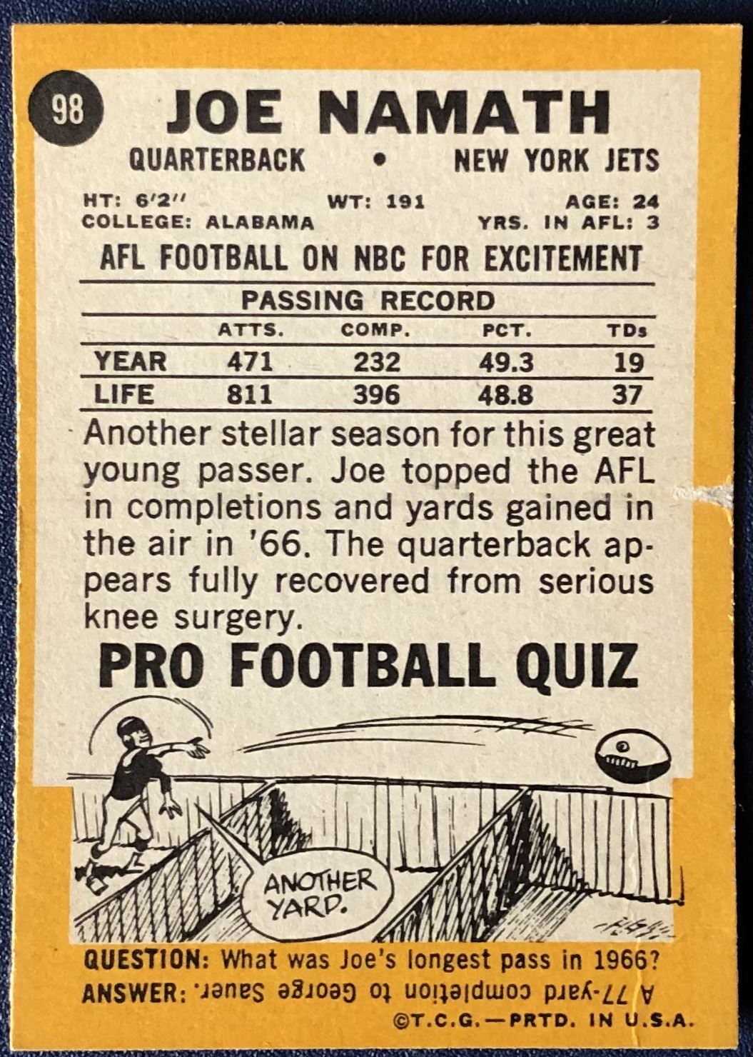 Card #98 NFL, football, vintage, hall of fame