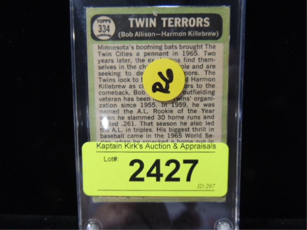 BOB ALLISON & HARMON KILLEBREW TWIN TERRORS #334 BASEBALL PLAYER CARDS. BASEBALL TRADING CARDS. VINTAGE CARDS. AS SHOWN. SEE PHOTO FOR MORE DETAILS.