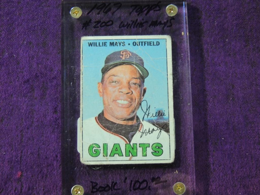 1967 TOPPS WILLIE MAYS #200 BASEBALL PLAYER CARDS. TRADING CARDS. COLLECTIBLE. COLLECTORS CARDS. IN SCREW DOWN CASE. VINTAGE CARD. AS SHOWN. SEE PHOTO FOR MORE DETAILS.